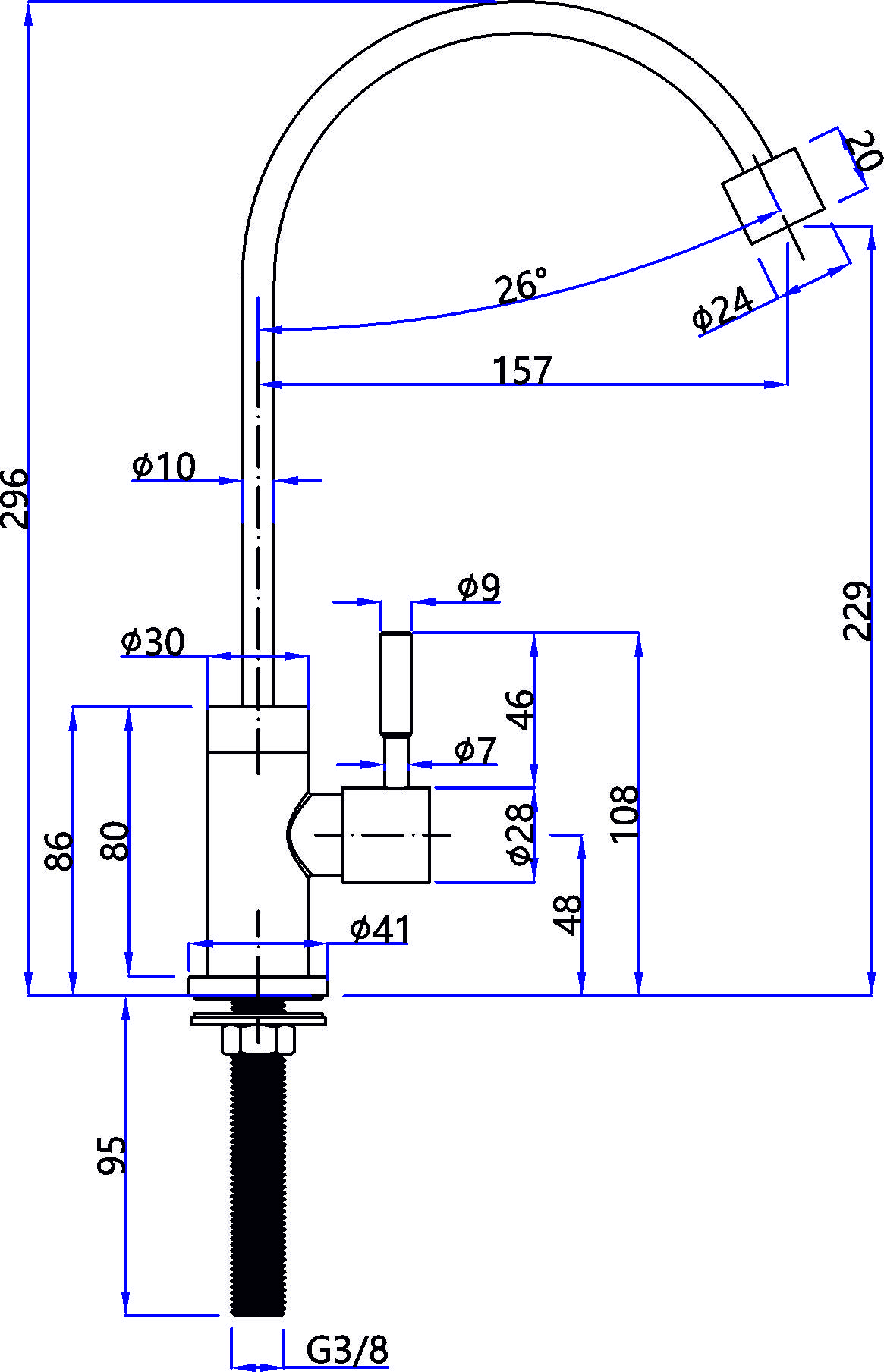 Der Sockeldurchmesser der Armatur beträgt ca. 41 mm.