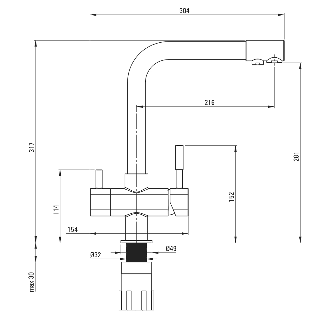 Auslaufhöhe über Arbeitsplatte: ca. 281 mm