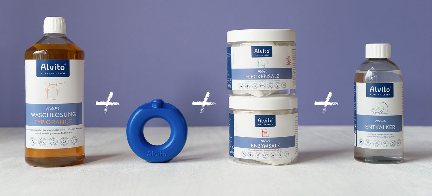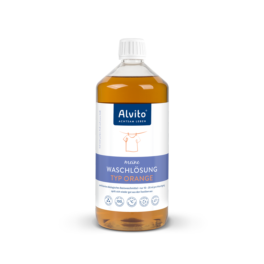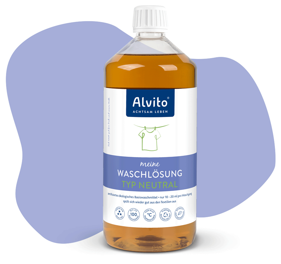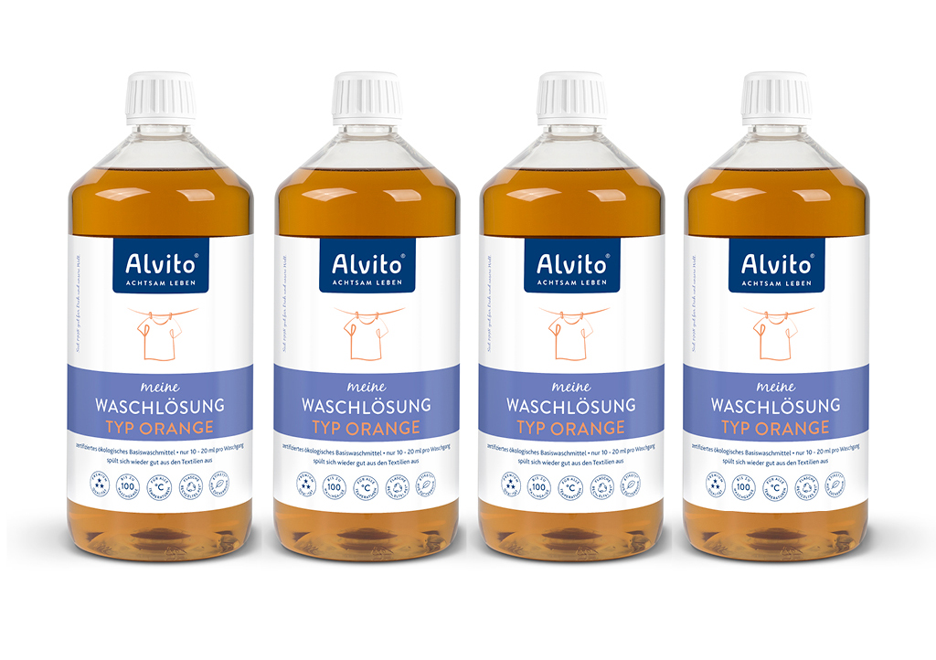 Die Alvito Waschlösung ist für alle Textilarten und Temperaturen (20° bis 95° C) geeignet. Die Rezeptur schont Gewebe und Farben.