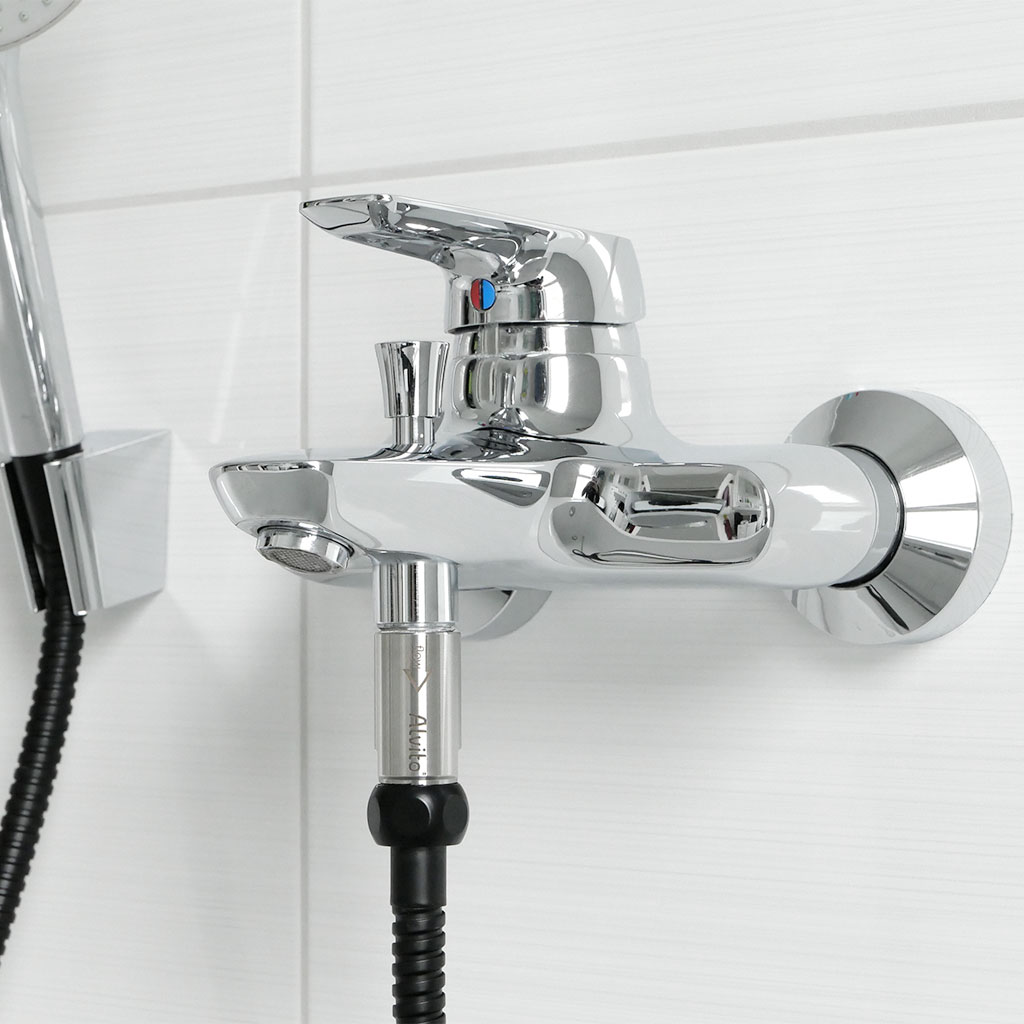 Dusch- und Badwirbler werden am Auslauf einer Dusch- oder Bade- Armatur installiert. Sie besitzen auf der Eingangsseite ein 1/2“-Innengewinde und auf der Ausgangsseite ein 1/2“-Außengewinde.Am Anschluß vom Duschschlauch handfest anschrauben. Auf den richtige Sitz der Dichtungsringe und die Durchflussrichtung (Pfeil auf dem Wirbler) achten.
