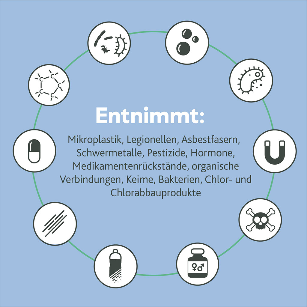 Wissenschaftliche Untersuchungen zeigen, dass Aktivkohle- Blockfilter die folgenden Stoffe gut bis sehr gut aus dem Leitungswasser entnehmen: