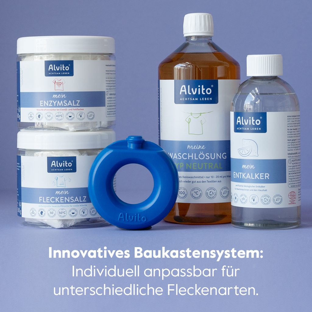 Mit dem Komplettset hast du den ganzen Alvito Waschmittel-Baukasten zur Hand. Egal wie schmutzig die Wäsche – deine Lieblingsteile sind noch zu retten!