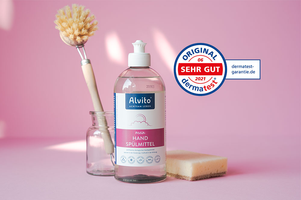 Sich mit jedem einzelnen Inhaltsstoff auseinanderzusetzen, ist aufwändig und wird deswegen nur selten gemacht. Zum Glück gibt es Siegel, die auch auf den ersten Blick eine Einschätzung des Produkts ermöglichen. Unser Handspülmittel wurde (wie übrigens auch unsereWaschLösungen) mit DermaTest dermatologisch getestet. Es schnitt im Test an Probanden mit sensibler Haut sehr gut ab.