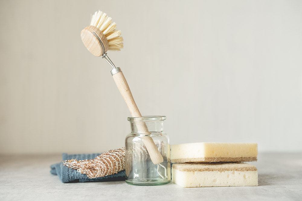 Deine Lappen und Schwämme solltest du gut auswaschen, um sie von Schmutz und Lebensmittelresten zu entfernen. Vor allem aber ist es wichtig, sie ordentlich auszuwringen. Anschließend solltest du sie nicht im feuchten Waschbecken liegen lassen, sondern sie möglichst aufhängen. Je schneller sie trocknen, desto weniger Keime können sich bilden. Deine Reinigungsutensilien in der Küche solltest du regelmäßig wechseln. Schwämme, Lappen und auch das Geschirrtuch sollten etwa alle ein bis zwei Wochen ausgetauscht werden und in die Waschmaschine wandern. Die Bürste kannst du ganz einfach mit in den Geschirrspüler geben, um sie zu reinigen.