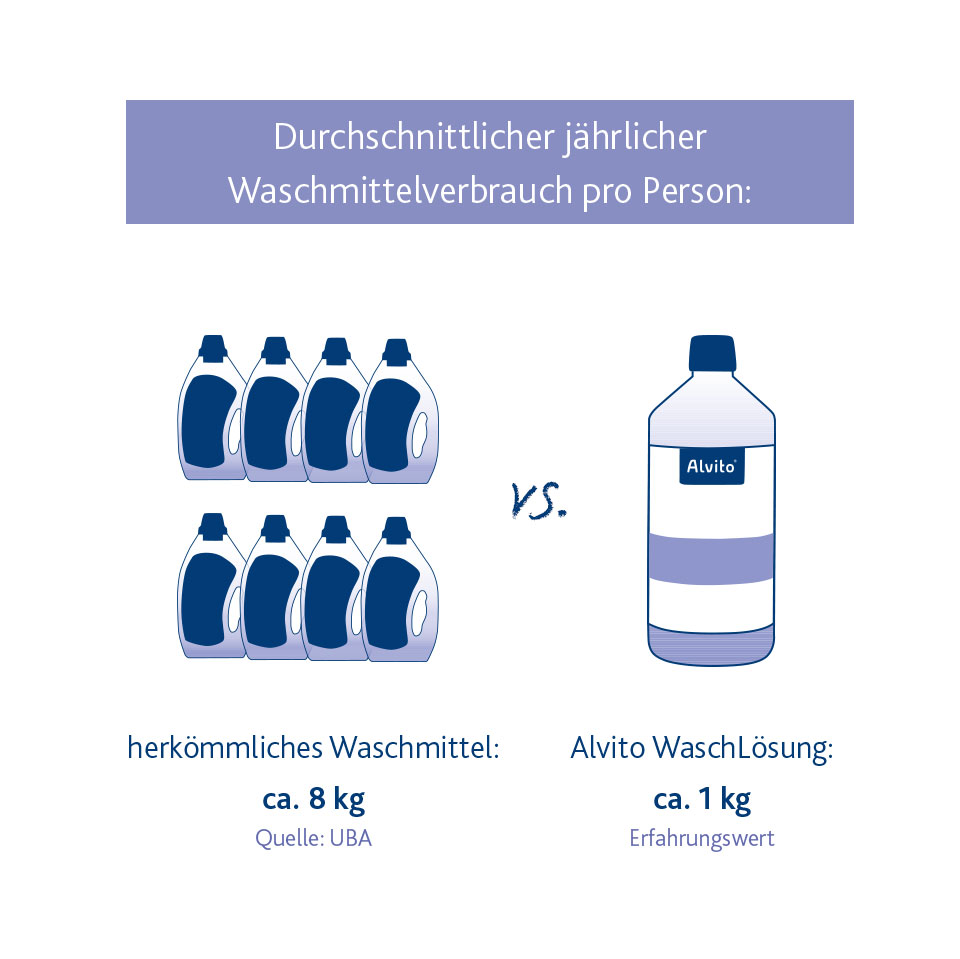 Verpackung und Preis geben nicht immer Aufschluss darüber, für wie viele Waschladungen das Mittel ausreicht. Achte daher auf die Dosierangabe des Herstellers. Konzentrate können dem ersten Anschein nach teurer sein und nach weniger Inhalt aussehen. Sie sind aber deutlich ergiebiger, als andere Mittel, denen im Zweifelsfall noch Füllmittel beigemischt wurden. Diese überflüssigen Stoffe sorgen letztlich nur für noch mehr Chemie im Abwasser. Zudem erspart ergiebiges Waschmittel Verpackung.