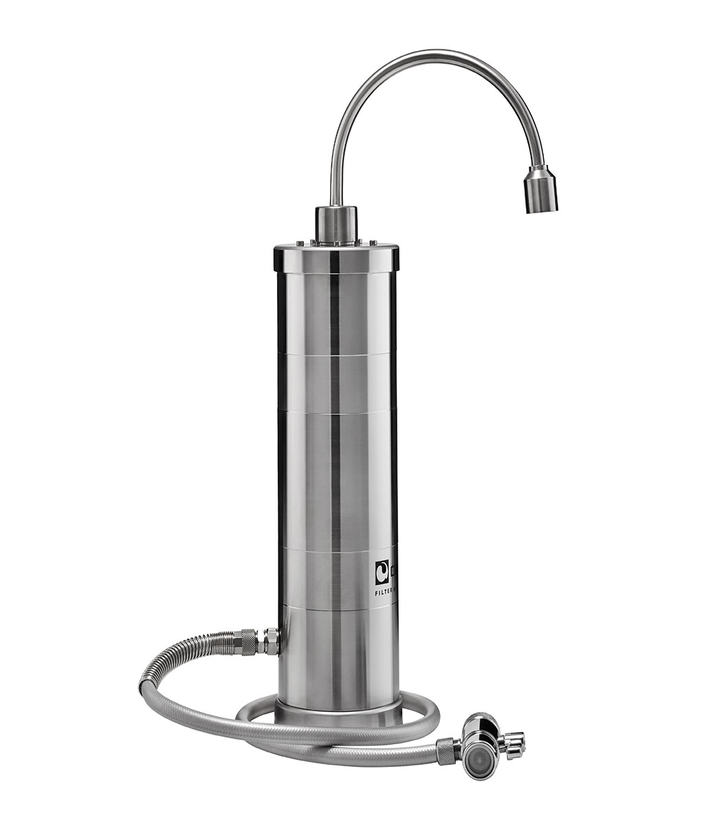 Carbonit Edelstahl Auftisch Wasserfilter INOX F mit Aktivkohle Blockfilter NFP Premium