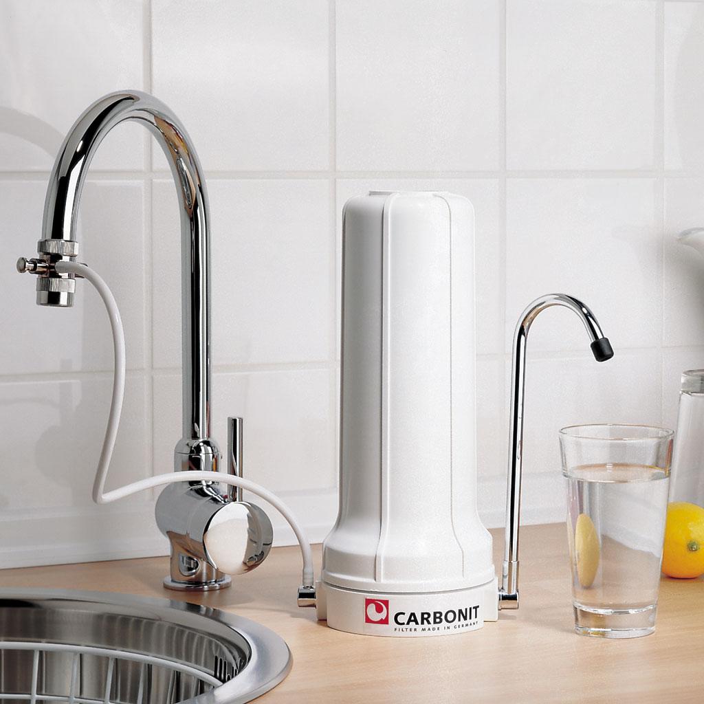 Die Firma Carbonit® bietet mit dem Sanuno Auftischfilter ein preiswertes, praktisches und flexibel einsetzbares Gerät. Der Sanuno ist mit allen geeigneten Aktivkohle-Blockfiltern von Carbonit und Alvito kombinierbar.