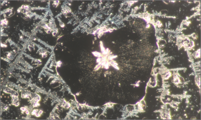 Filter und Wirbler zusammen lassen ein neues, überaus lebendiges und intensives Kristallbild erscheinen, welches in allen Tropfen einheitlich auftritt und somit eine eindeutige Information zum Ausdruck kommt. Rechtwinklige und parallele Formen weisen auf eine statische Eigenschaft hin. Die runden Vakuolen dagegen sind ein Hinweis auf „freie Energie“, was den Anschluss an die Energie des morphogenetischen Umfeldes ausdrückt.