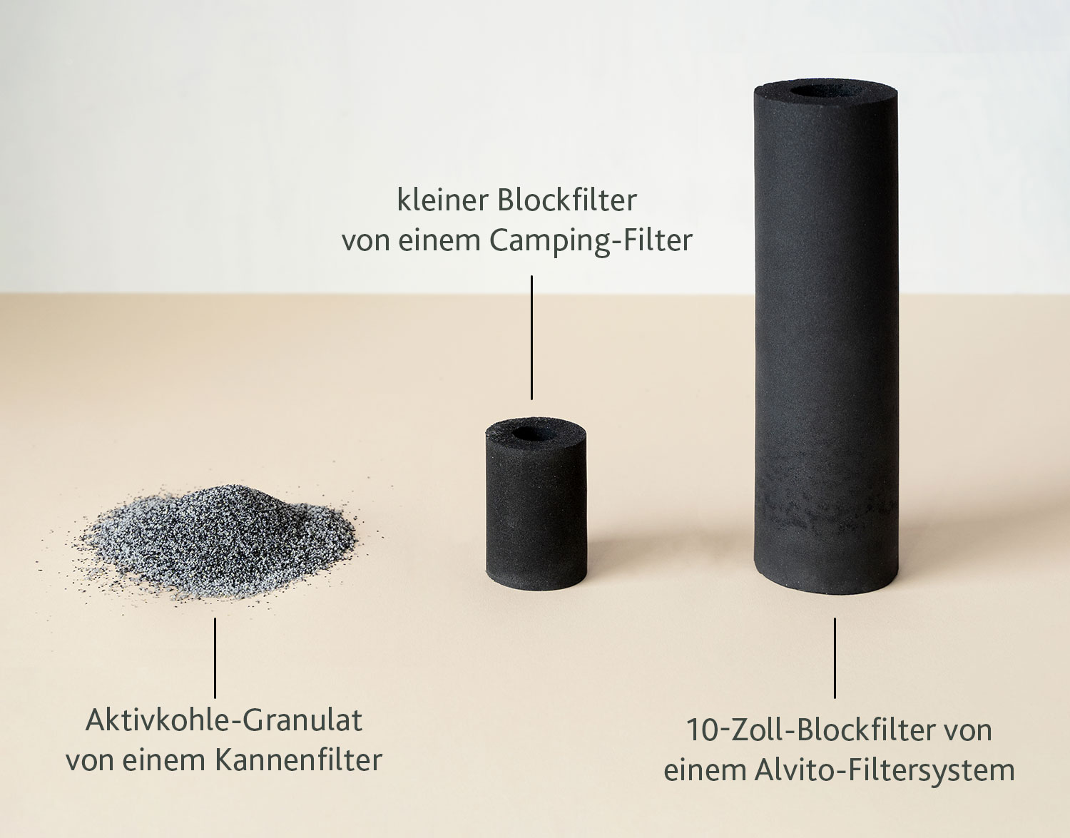 Alvito setzt auf gesinterte Aktivkohleblöcke, die durch ihre gleichmäßige Porengröße und den höheren Aktivkohlegehalt eine besonders effiziente Filterleistung bieten.